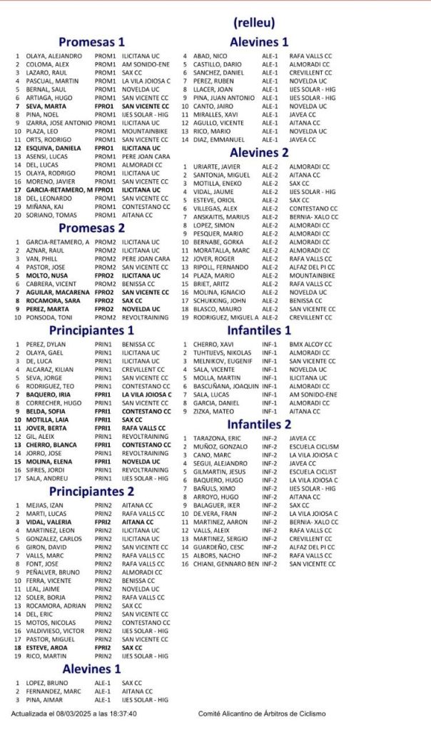 A nivel individual, Alejandro Olaya (UC Ilicitana) y Marta Seva (CC. San Vicente) han sido los ganadores en la categoría de Promesas 1; A. García-Retamero (UC Ilicitana) y Nusa Moltó (UC Ilicitana), en Promesas 2; Dylan Pérez (Benissa) e Iria Baquero (La Vila Joiosa), en Principiantes 1; Izán Mejías (La Vila Joiosa) y Valeria Vidal (Aitana), Principiantes 2; Bruno López (CC Sax), en Alevines 1; Javier Uriarte (Almoradí), en Alevines 2; Xavi Cherro (Alcoy), en Infantiles 1; y Eric Tarazona (Javea), en Infantiles 2.