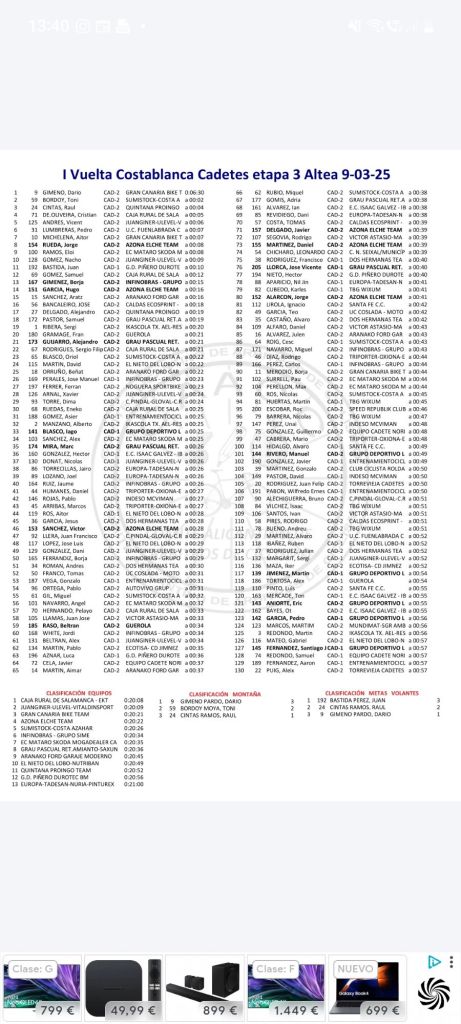 Etapa 3. Domingo, 9 de marzo. Altea. CRI. 4.3Km. 10h. Clasificaciones