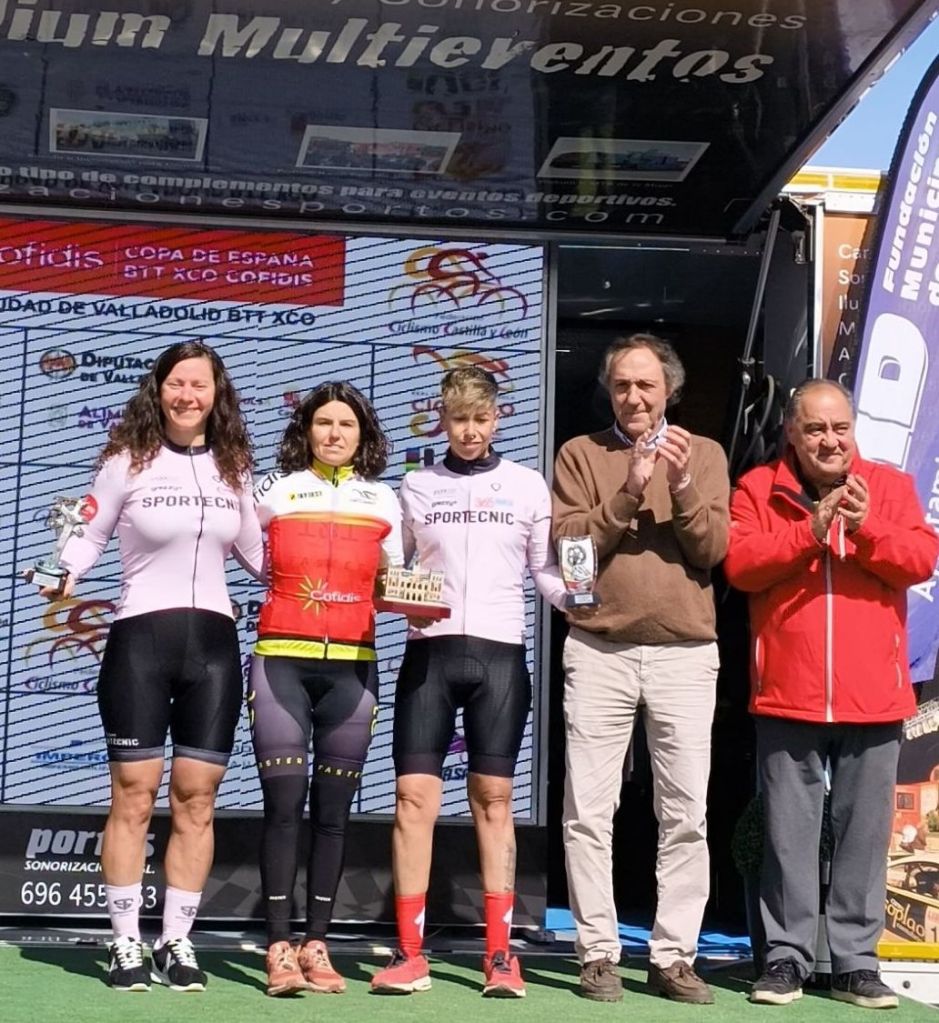 Entre las féminas, Lucía Gómez, en su debut como corredora élite, lograba su primera victoria en la Copa de España en la máxima categoría. La carrera fue dominada por Estíbaliz Sagardoy hasta la última vuelta. La navarra, vencedora en Valladolid en dos ocasiones, sufrió un pinchazo en la última bajada al rock garden lo que le hizo perder todas las opciones de victoria. Este problema fue aprovechado por Lucía Gómez y Nuria Bosch, que durante toda la prueba lucharon por intentar alcanzar a la del Saltoki. Una vez sobrepasada Sagardoy, Gómez atacó a Bosch, y entró en línea de meta con una renta de once segundos sobre la menorquina, que en este caso, se vistió como nueva líder de la prueba. Sagardoy llegaba a 45 segundos con la rueda pinchada. La mejor sub23 ha sido Magali Albisu, quinta clasificada de la prueba.
