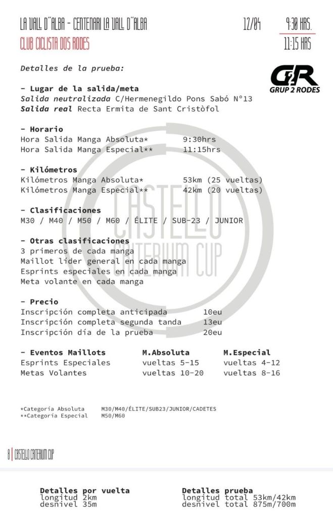 Etapa 2. 12 de abril. La VAll d’Alba – Centenari La Vall d’Alba. 9:30 horas.