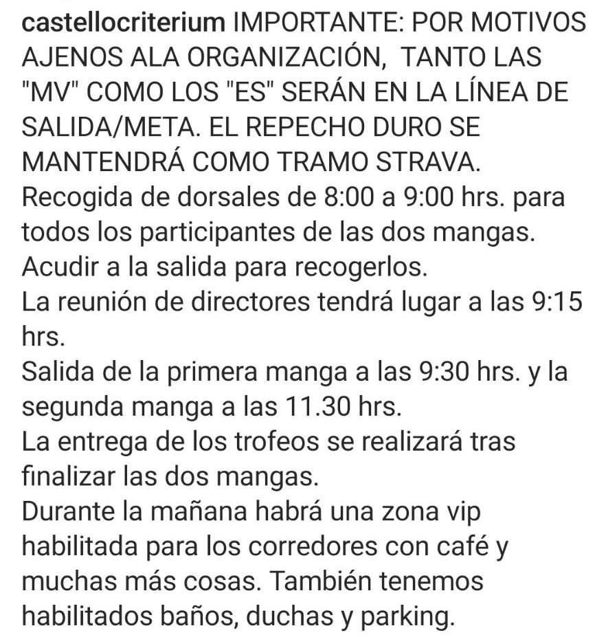 La Castellón Critérium Cup es una carrera multicategoría que se dividirá en dos mangas. En una competiran los júniors, Máster30 y M40, y, en la segunda, M50 y M60. En Oropesa, en la segunda carrera también tendrán entrada las féminas desde cadetes y los paraciclistas. Tanto en La Vall d’Alba y Sant Jordi no acudirán las féminas ya que cuentan prueba de la Challenge de la CV. Se pretende, si hay participación, que los Máster 50 y 60 tengan su prueba también en La Vall d’Alba y Sant Jordi. Cada carrera consta de metas volantes y esprint especiales.