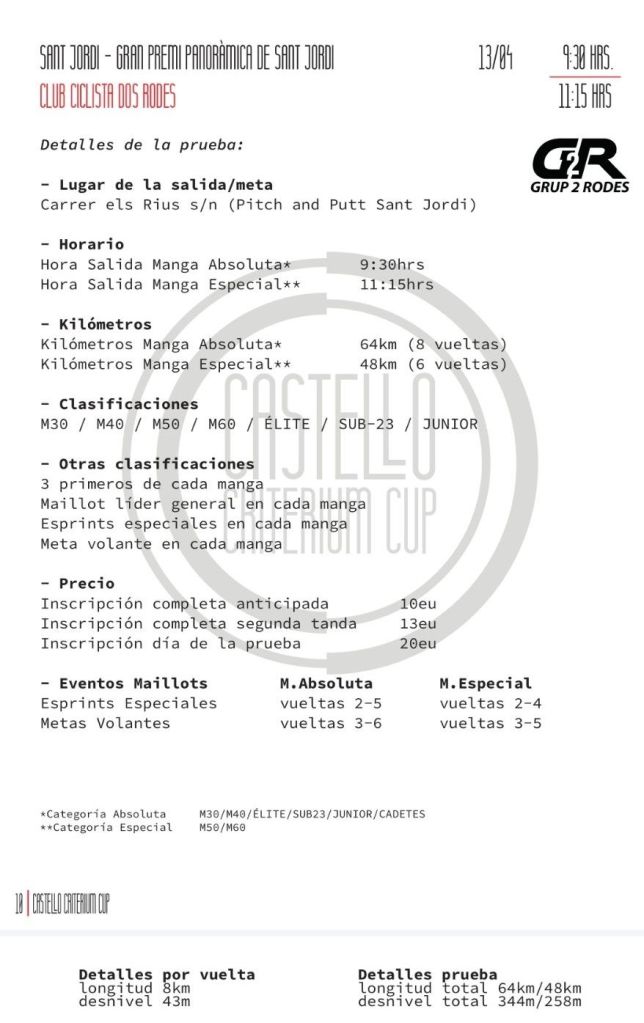Etapa 3. 13 de abril. Sant jordi – Gran Premi Panorámica de Sant Jordi. 9:30 horas.
