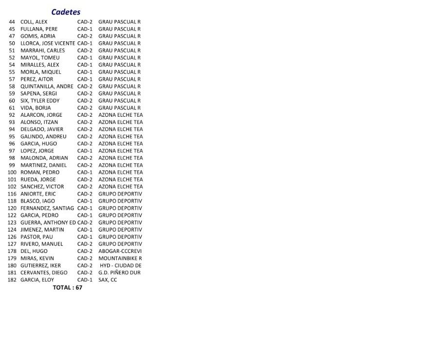 El número de inscritos es de 229 corredores, 67 de ellos Cadetes.