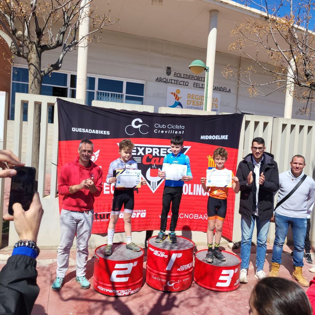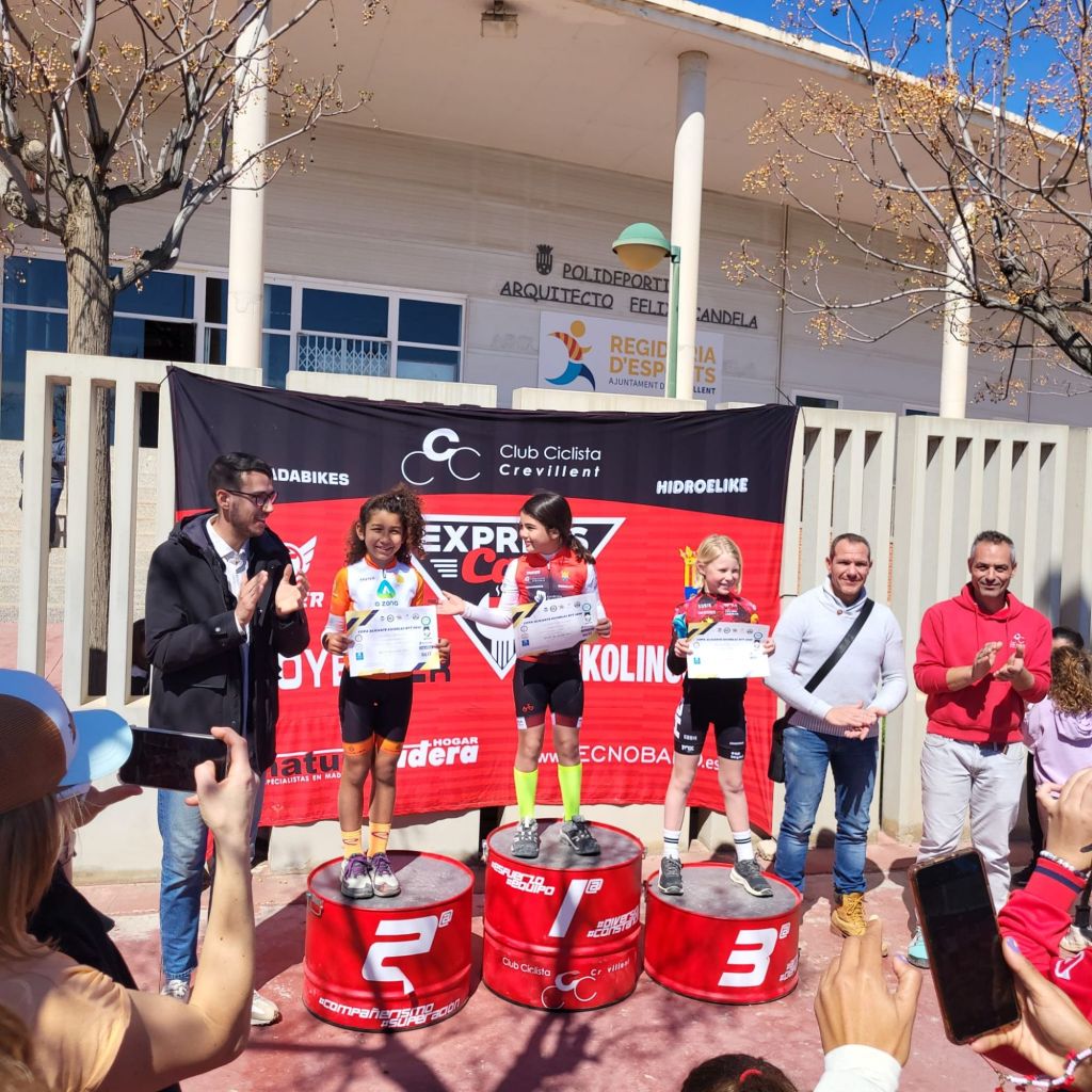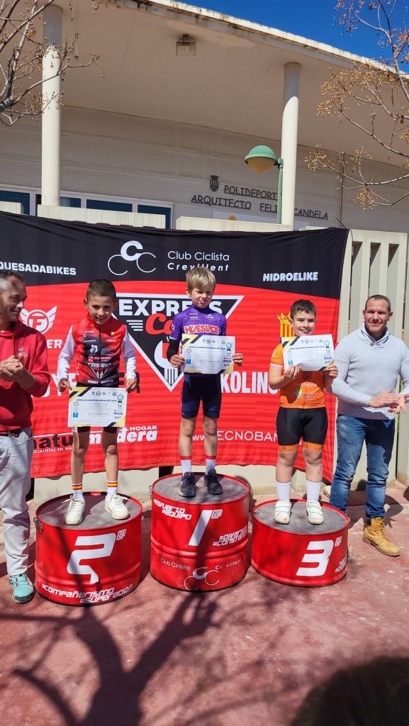 En las pruebas de Escuela, Eric Tarazona (Jávea) y Ainhoa Cano (AM Sonido) se han impuesto en Infantiles 2; Javier Delegido (Escuela José Sabater) y Valeria Coloma (AM Sonido), en Infantiles 1; Alejandro Arqués (Yecla) y Lucía Lledó (Bernia Xaló), en Alevines 2; Darío Castillo (Almoradí) y Julia Solbes (La Nucía Coloma), en Alevines 1; Iván Cortés (Crevillent) y Carla Martínez (Crevillent), en Principiantes 2; Guillén Verdú (La Vila) e Iria Baquero (La Vila Joiosa), en Principiantes 1; David Chenoll (Big Bikes) y Cristina Iñesta (Crevillent), en Promesas 2; y Alejandro Olaya (UC Ilicitana) y Helena Verdú (La Vila Joiosa), en Promesas 1.
