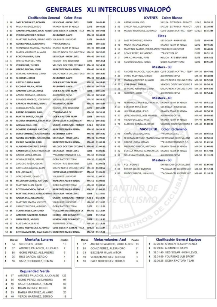 Etapa 4. Castalla. Memorial José Vidal García. 8 de febrero. Clasificaciones