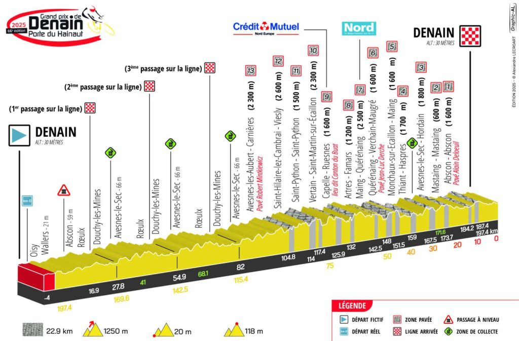 El Gran Premio Denain 2025 tendrá lugar hoy jueves 20 de marzo y volverá a ser una carrera perfecta para los especialistas del adoquín. Serán 197,4 kilómetros con 13 tramos de pavé, uno más que en 2024, la edición en la que se terminó imponiendo Jannik Steimle desde la fuga.