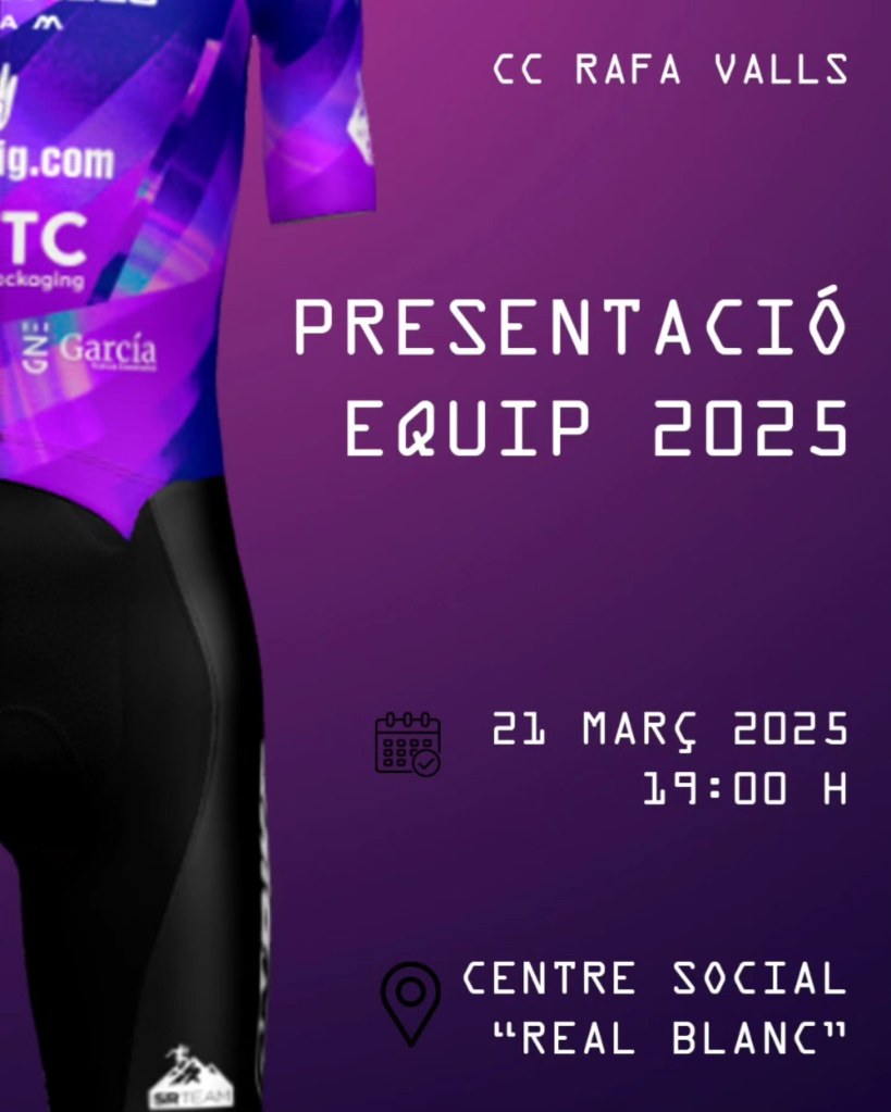 Esta tarde, a partir de las 19 horas, se celebra en Cocentaina, en el Centro Social Real Blanc, la presentación del Club Ciclista Rafa Valls. Un proyecto que cuenta con el patrocinio de Fisio Jordi Reig, ITC Packaning, Crea 360, 226 ERS, Iberpapel, Nuevos Encofrados Carlos García, SR Training, On Bike, 9 Oliveres, Ajuntament de Cocentaina y Benimotor.