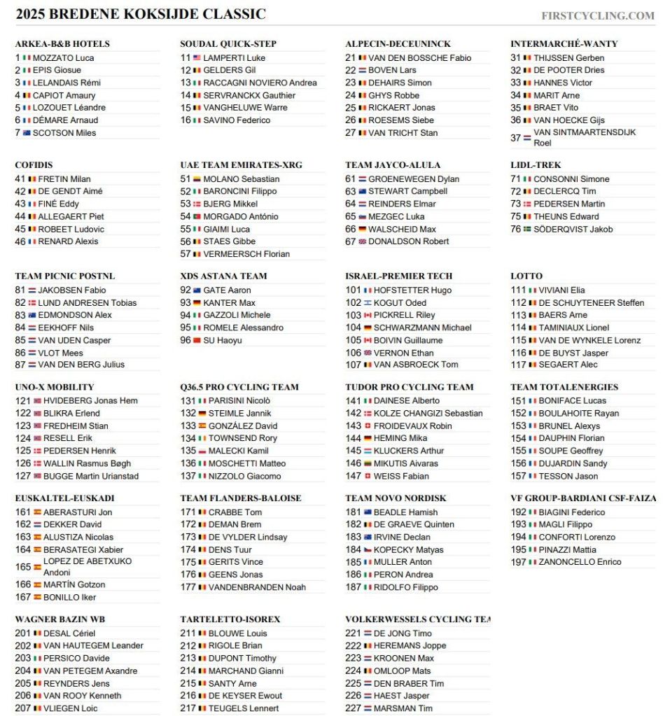 La 23ª edición de la Clásica Bredene Koksijde se disputa hoy viernes 21 de marzo sobre un recorrido de 201 kilómetros, con salida y llegada en las dos localidades belgas que dan nombre a la prueba. Cuenta con un doble ascenso al Baneberg y el Kemmelberg a mitad de recorrido, el paso por De Moeren, la larga recta expuesta al viento en el que podrían formarse abanicos, y el circuito final en Koksijde al que se darán tres vueltas.