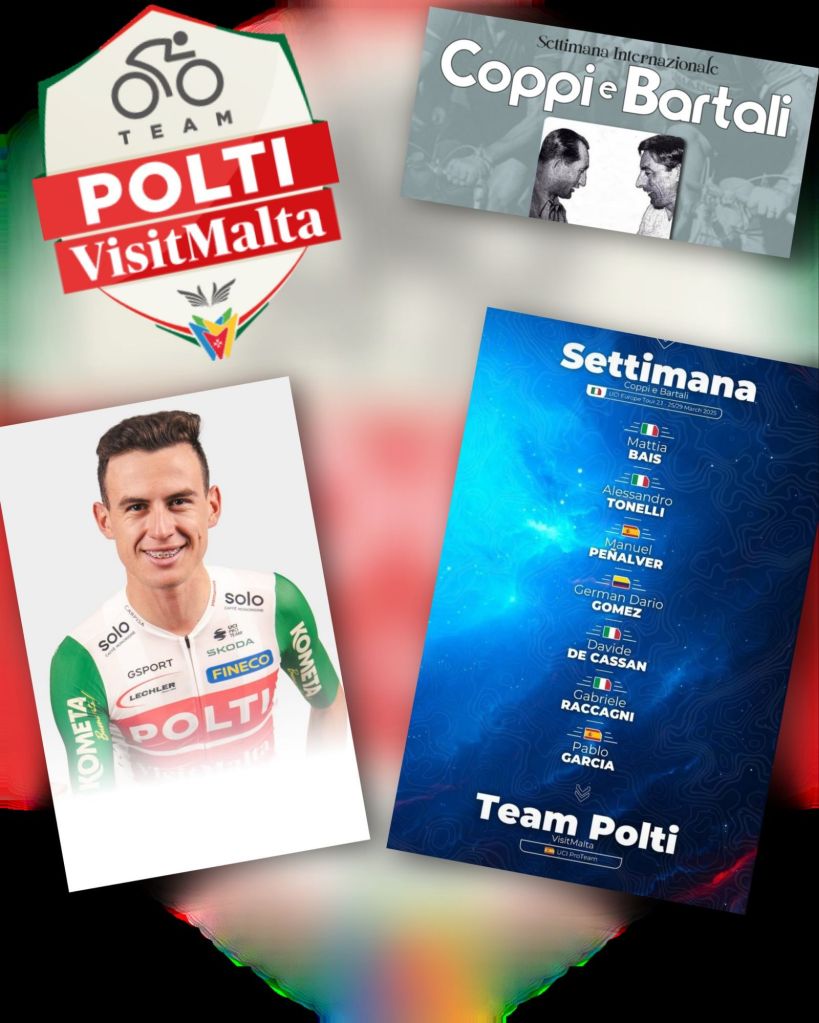 Para una carrera tan rompepiernas, donde hay que combinar inteligencia y potencia, el Polti VisitMalta apostará por la velocidad del torreveiejense Manuel Peñalver y un bloque de auténticos guerrilleros del pelotón: los experimentados Mattia Bais (protagonista de largas fugas en Laigueglia y en la Milán-Turín) y Alessandro Tonelli contarán con el respaldo de Germán Gómez, Davide De Cassan, Pablo García y Gabriele Raccagni.
