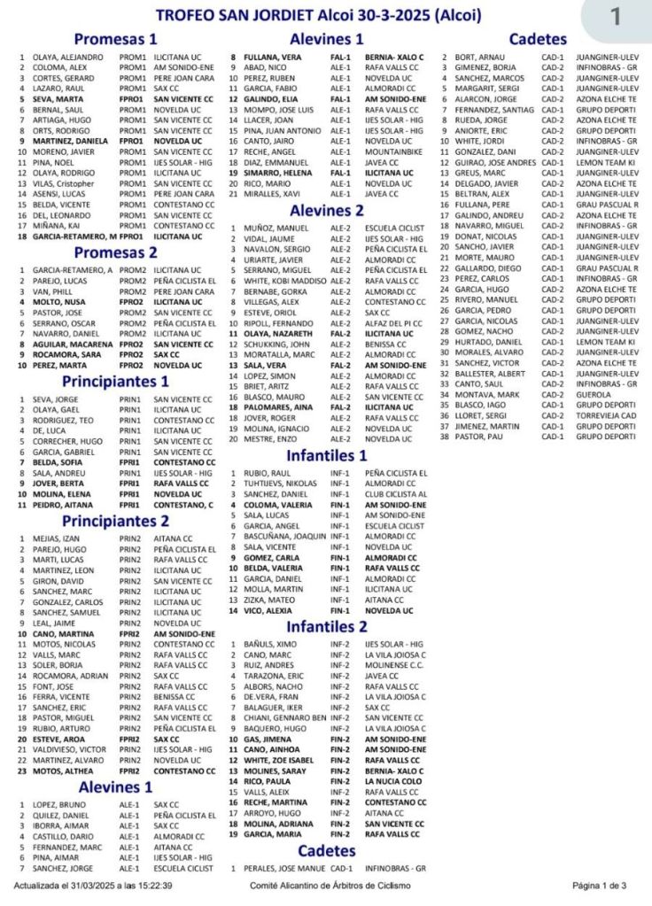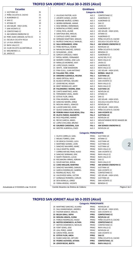 30/03 Trofeo San Jordiet. 10 horas. Alcoy. Clasificaciones