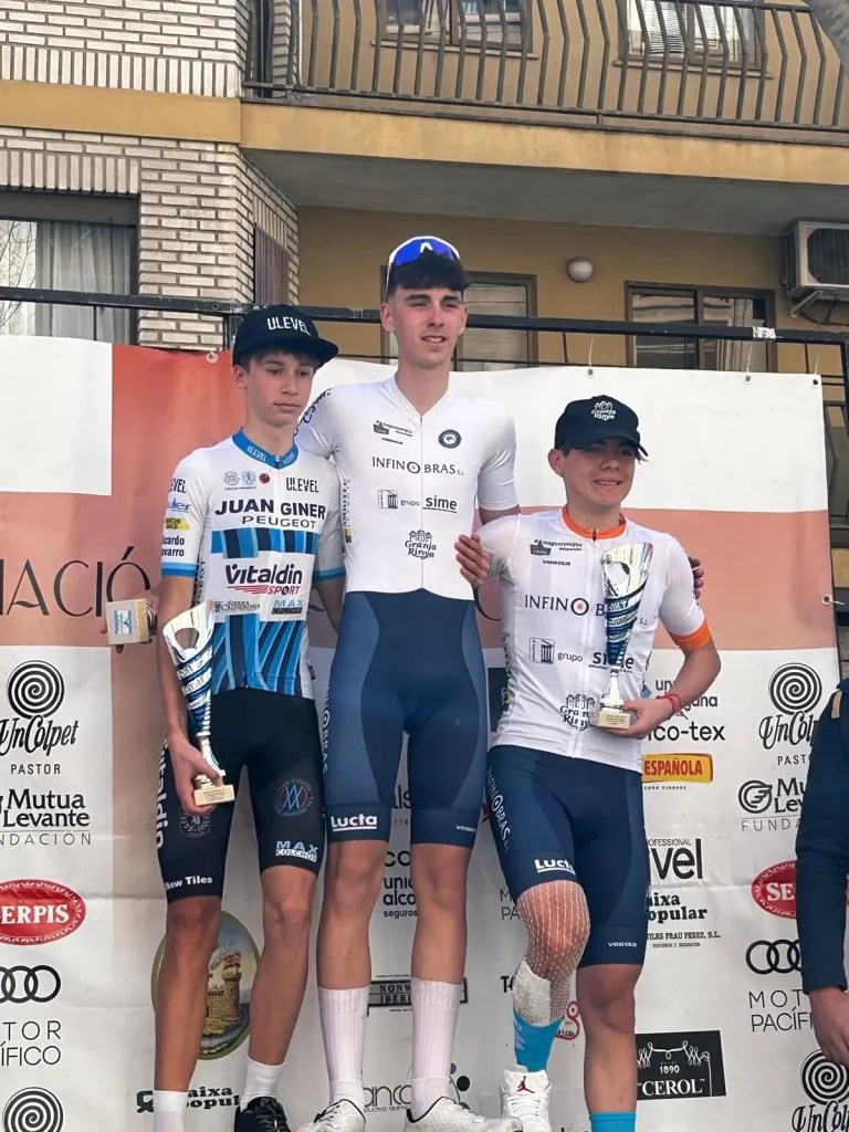 Borja Giménez lidera el Ranking Cadete de la Comunidad Valenciana tras la disputa del Trofeu Sant Jordiet de Alcoy en el que finalizó tercero y el que ganó su compañero José Manuel Perales. El ciclista del Infinobras-Grupo Sime suma 196 puntos por los 163 de Jorge Rueda (Azona Elche Team) y los 133 de Álex Beltrán (Juanginer Ulevel Vitaldinsport. «Me siento motivado y con grandes expectativas para afrontar los próximos retos porque está dando fruto todo el trabajo hecho. Gracias a mis compañeros y a los directores de equipo que lo están haciendo fenomenal», apunta el corredor crevillentino.