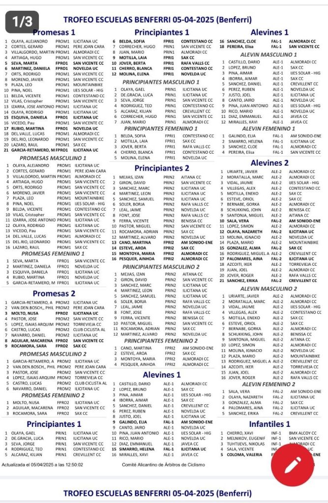 30/03 Trofeo San Jordiet. Alcoy. Clasificaciones
