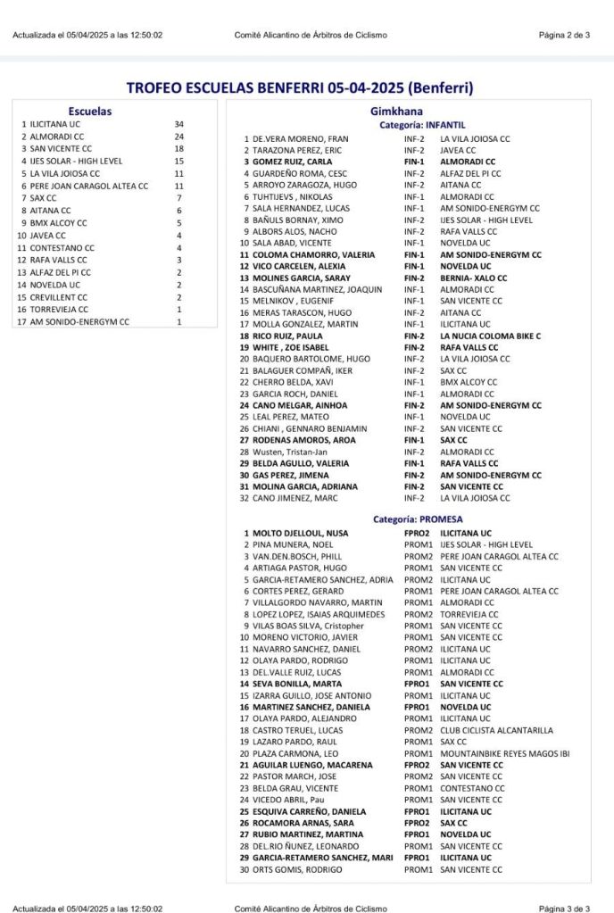05/04 Trofeo Escuelas de Benferri. Clasificaciones