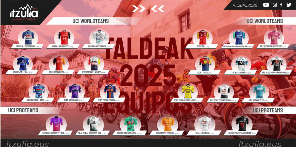 La 64º edición de la Vuelta al País Vasco, la Itzulia Basque Country, comienza hoy y se desarrollará hasta el 12 de abril La competición dará inicio, al igual que el año pasado, con una contrarreloj individual. Esta vez en Vitoria-Gasteiz, desde el Pabellón Fernando Buesa. La prueba continuará su curso hacia Navarra en una jornada que se presume abierta a velocistas entre los municipios de Pamplona y Lodosa, para continuar los días posteriores en territorio vasco con cuatro etapas de media montaña donde el pelotón visitará las localidades de Zarautz, Beasain, Markina-Xemein, Orduña, Gernika y Eibar. En esta edición habrá 23 puertos de montaña puntuables: 4 de 1ª categoría, 3 de 2ª categoría y 16 de 3ª categoría. Habrá bonificaciones en meta (10”, 6”, 4”) y en los sprints intermedios (3”, 2”, 1”).