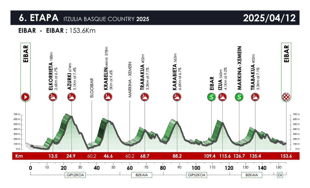 6ª: Sábado 12 abril. Eibar (13:39)-Eibar (17:30), 153.40 km