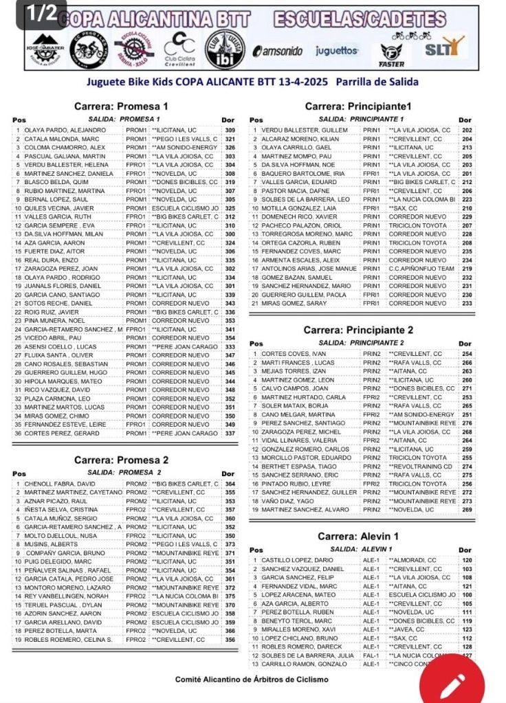 El calendario de la Copa Alicante de BTT de Escuelas/Cadetes. General