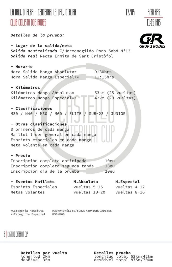 Etapa 2. 12 de abril. La Vall d’Alba – Centenari La Vall d’Alba. CIRCUITO