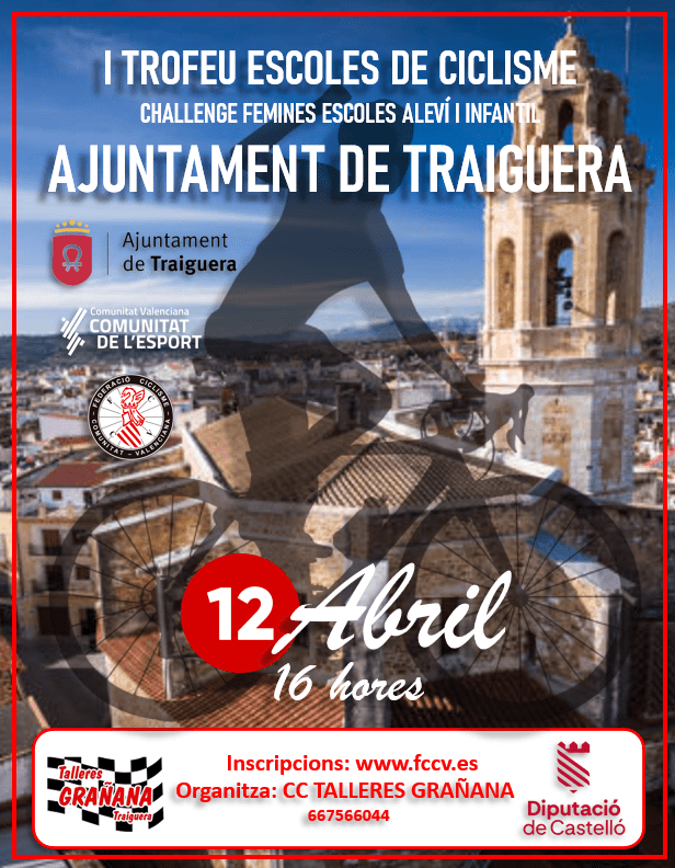 El sábado, 12 de abril, se disputa el I Trofeo Escoles de Ciclisme Ajuntament de Traiguera. La prueba es puntuable no sólo para la Challenge de Escuelas de la provincia de Castellón sino también para la de Féminas, Alevín e Infantil. La competición comenzará a las 16 horas. Tras la de Lucena del Cid será la segunda carrera del Torneo de Castellón.