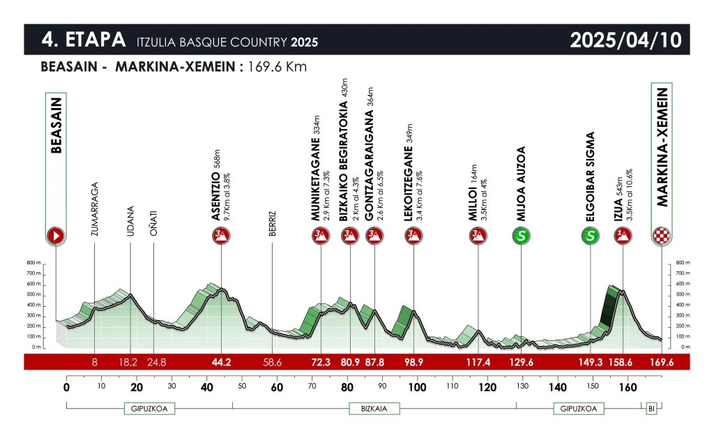 4ª: Jueves 10 abril. Beasain (13:15)-Markina Xemein (17:30), 169.60 km