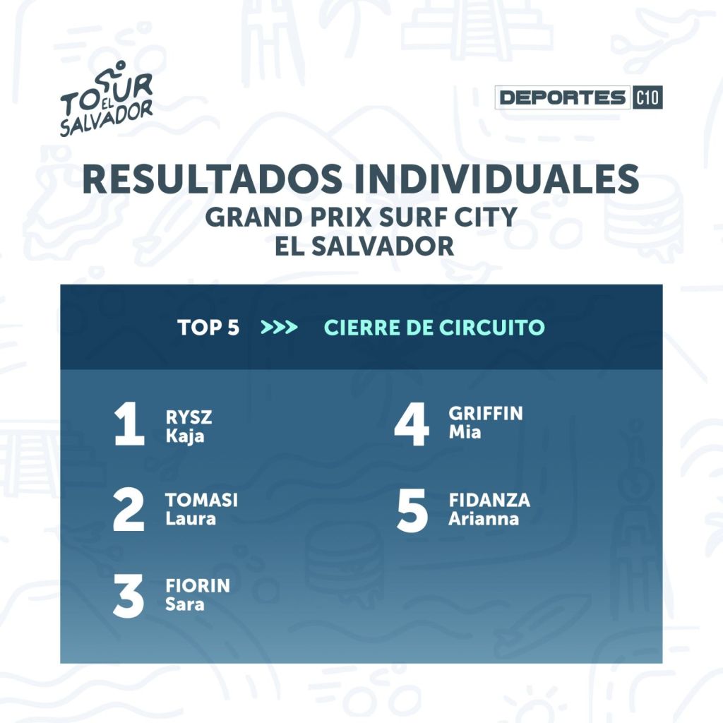 El Tour El Salvador 2025 llegó a su fin con la disputa del Grand Prix Surf City. Kaja Rysz (Roland Cycling Team) ha sido la vencedora de esta prueba de 110 kilómetros que comenzó en el Centro Histórico de San Salvador y terminó en el parque Surf City Walter Thilo Deininger, en La Libertad. Laura Tomasi (LABORAL Kutxa Team) entró en segunda posición y Sara Fiorin (Ceratizit Pro Cycling), tercera.
