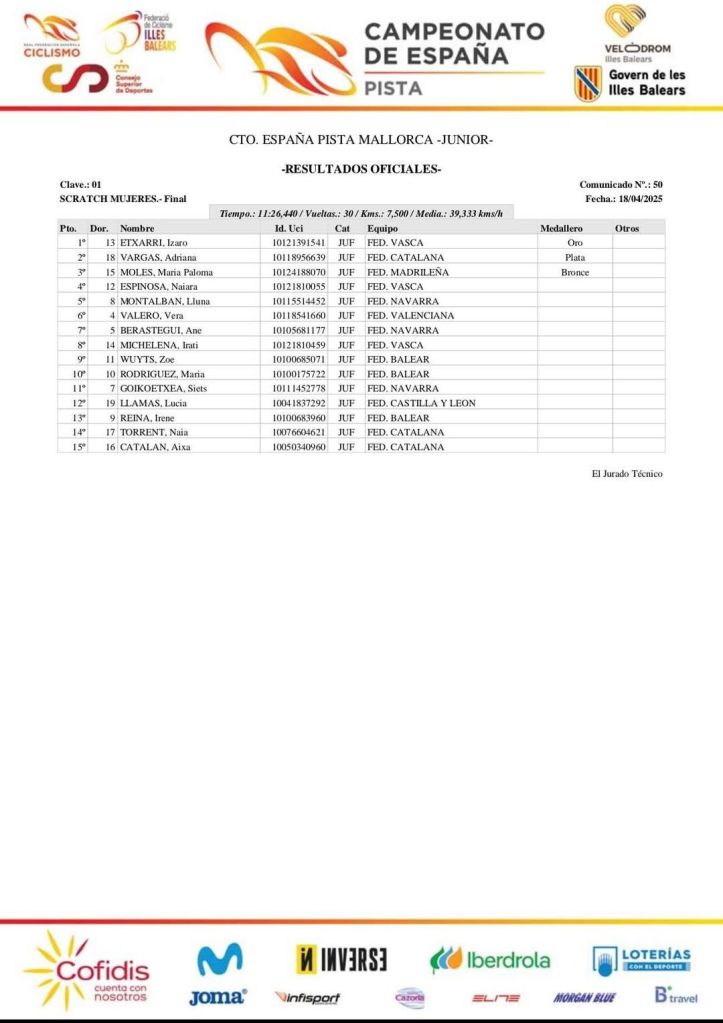 Izaro Etxarri se proclama campeona de España junior de Scratch en una apretada lucha por la victoria con Adriana Vargas y María Paloma Molés.