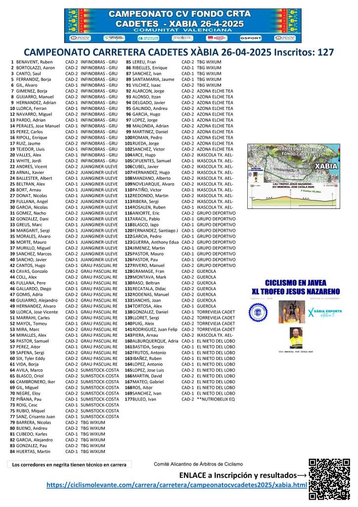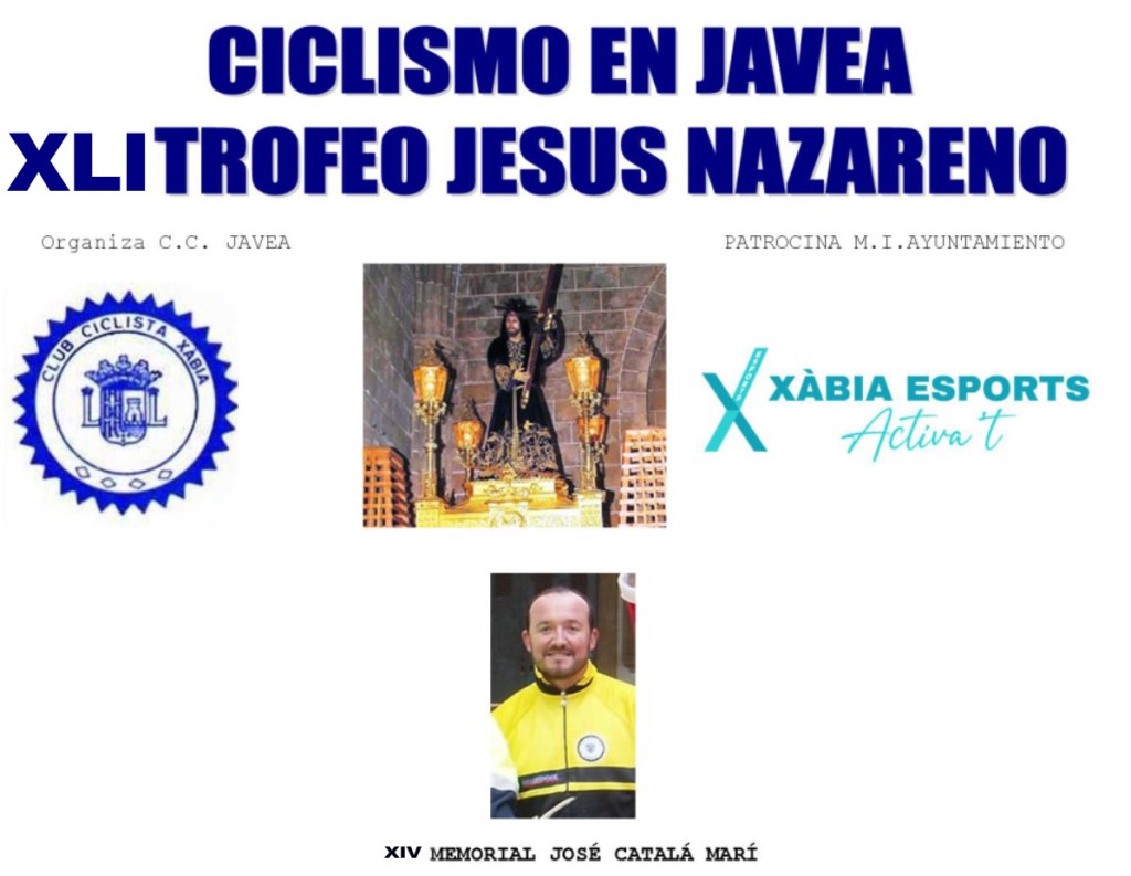 El sábado, 26 de abril, se disputa en Xàbia el XLI Trofeo Jesús Nazareno-XIV Memorial Jose Catalá Marí que vestirá a los nuevos campeones autonómicos de la categoría cadete. Un total de 127 corredores afrontarán un circuito en el que se darán a 3 vueltas a Jesus Pobre hasta completar 52 kilómetros. La salida se dará a las 17 horas