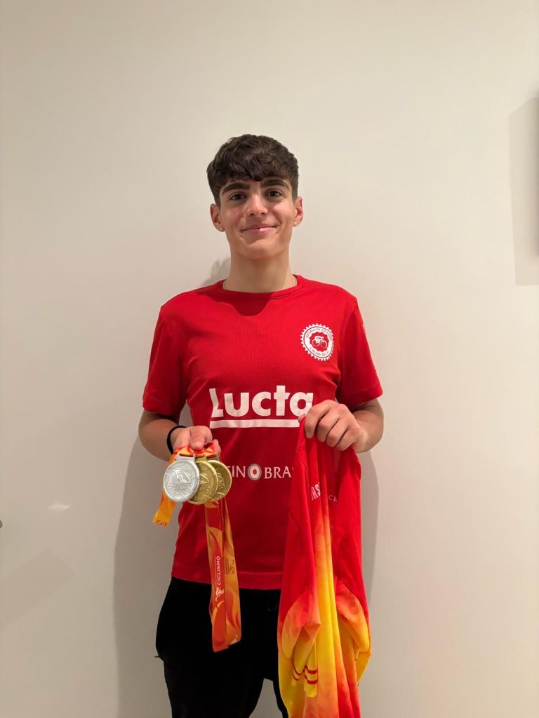Asier Fortea (Lucta Granja Rinya) regreso del Campeonato de España de Pista Júnior y Cadete disputado en Palma con dos medallas de oro, en Scratch y en Velocidad por escuadras, y con una de plata, en Persecución individual. Dos maillots de rojigualdos para ampliar un palmarés que parece no tener fin.