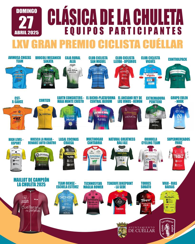 El domingo se disputa el LXV Gran Premio Ciclista de Cuéllar ‘Clásica la Chuleta’, una prueba de un gran prestigio nacional, apta para velocistas que tiene un recorrido de 159,5 kilómetros dando cinco vueltas a un circuito de 31,9, cuya dificultad más importante es el paso por Cuéllar con una subida de 3 kilómetros al 3% en donde estará situada la meta al final de la última de las vueltas. El resto del circuito es totalmente llano y se prevé un sprint masivo en meta. El peligro puede ser el viento. Si hace aparición condicionará la carrera rompiendo y seleccionando el pelotón, dejando posiblemente en cabeza a un selecto grupo de corredores que se disputarán la carrera en meta. La participación será de siete ciclistas por equipo.
