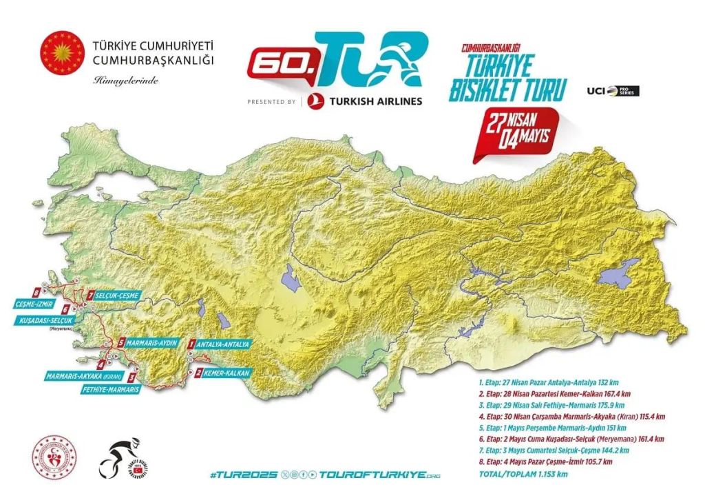 Desde hoy hasta el próximo domingo, el Team Polti VisitMalta competirá en los confines orientales de Europa en una prueba de ocho días cuyo nombre oficial es Presidential Cycling Tour of Türkiye. El ganador de la general se llevará el maillot turquesa (color elegido para evocar el nombre del país), pero también estarán en juego el maillot verde de la clasificación por puntos, el rojo de la montaña y el blanco de las metas volantes.
