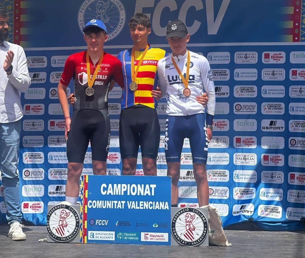 Castillo de Onda está de enhorabuena tras la victoria de Vicent Sansano en el Campeonato de la Comunitat Valenciana de BTT XC disputado en Tibi. Aunque sufriera una caída y un pinchazo durante el desarrollo de la prueba, el corredor supo sobreponerse a las adversidades y adueñarse del preciado maillot de campeón de la categoría júnior. Las buenas noticias no acaban ahí. La tercera posición del cajón del pódium también formó parte de la estructura castellonense. Xabi Abdón le ha brindado a la formación un gran resultado tras marcarse una carrera espectacular mostrando una notable mejoría. Hugo Fajardo y Carlos Macías completan una jornada de ensueño finalizando con un muy buen trabajo dentro del top-15.
