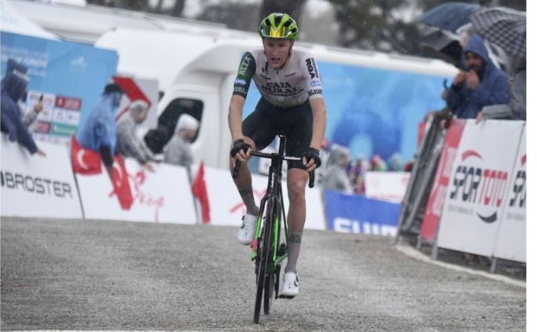 Etapa muy dura la vivida este miércoles en el Tour de Turquía. Y no sólo por la exigencia de su trampa final, un tremendo puerto de 9 km a casi 10% de media, sino también por las condiciones que acompañaron a los corredores durante las dos horas finales, con una lluvia que provocó múltiples caídas como la que afectó a Daniel Babor y Tyler Stites, obligando a abandonar al estadounidense, que antes se había filtrado en la primera escapada del día.