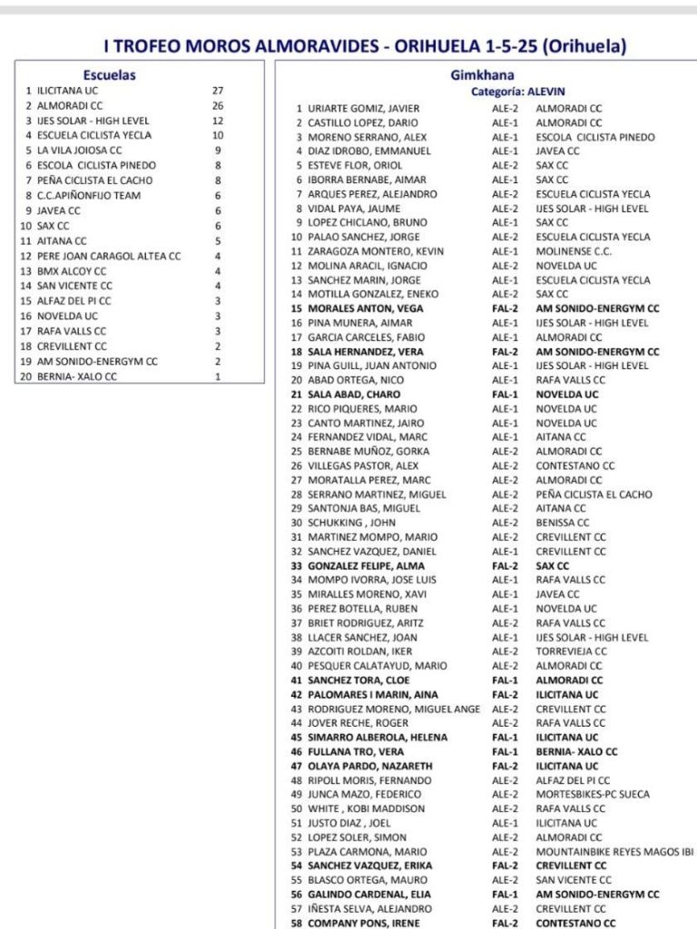 05/04 Trofeo Escuelas de Benferri. Clasificaciones