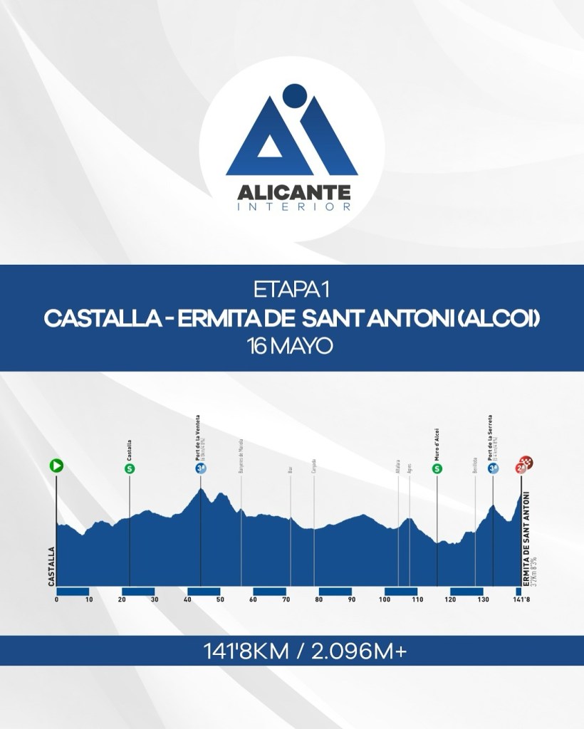 -Etapa 1. Viernes 16, de mayo: Castalla-Ermita Sant Antoni (Alcoy). 141,7km +2.096m desnivel
