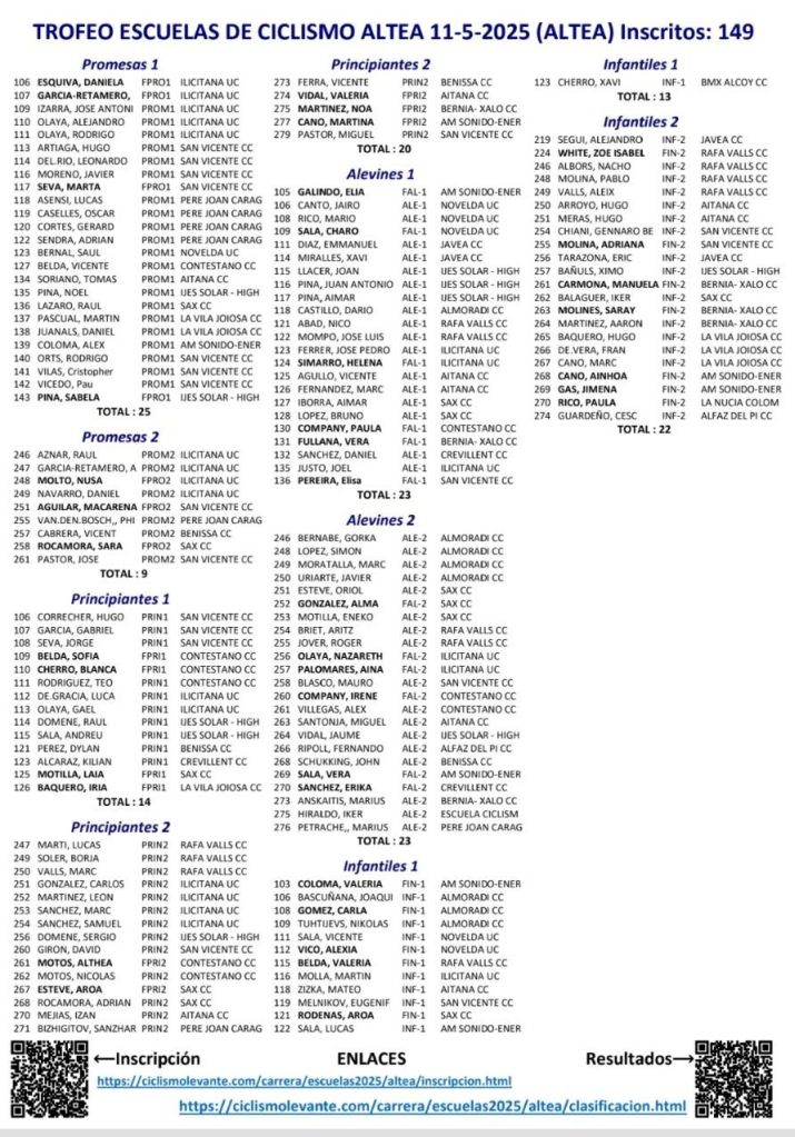 03/05 III Trofeu Escoles de Ciclisme. El Camp de Mirra. Clasificaciones