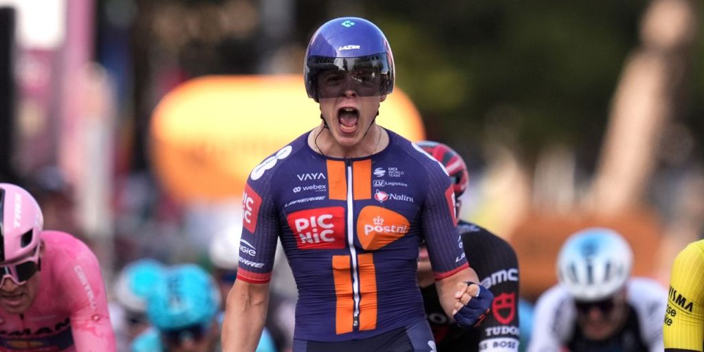 Casper van Uden gana la etapa 4 del Giro d’Italia 2025, su primera victoria en la Corsa Rosa. Tras el neerlandés terminaron sus compatriotas Olav Kooij y Maikel Zijlaard. El otro gran protagonista del día fue español. Mads Pedersen mantiene el liderato de la carrera, mientras los favoritos siguen resguardados a la espera del test del viernes, en la séptima etapa
