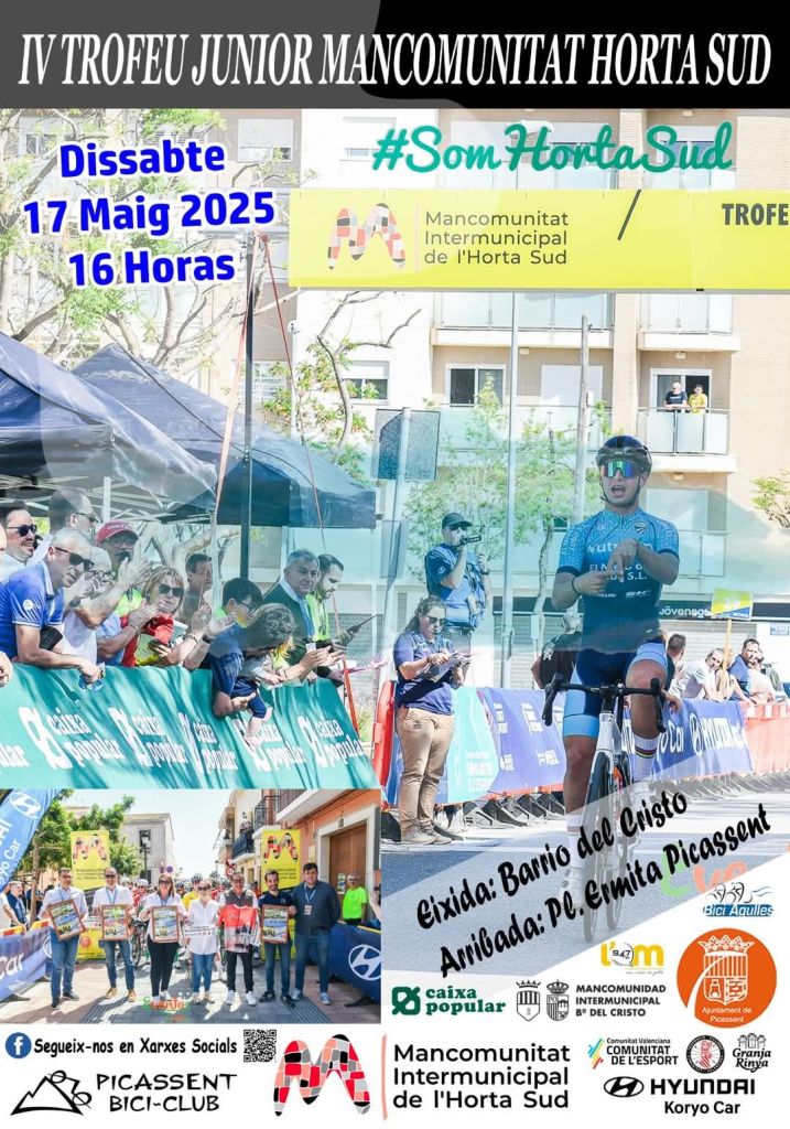 El Barrio del Cristo de Picassent acoge el sábado, 17 de mayo, la cuarta edición del Trofeu Junior Mancomunitat Horta Sud. La salida se dara a las 16 horas y la prueba está organizada por la Mancomunitat Intermunicipal de l’Horta Sud. La prueba es puntuable para la Challenge Júnior de Ruta de la Comunidad Valenciana.