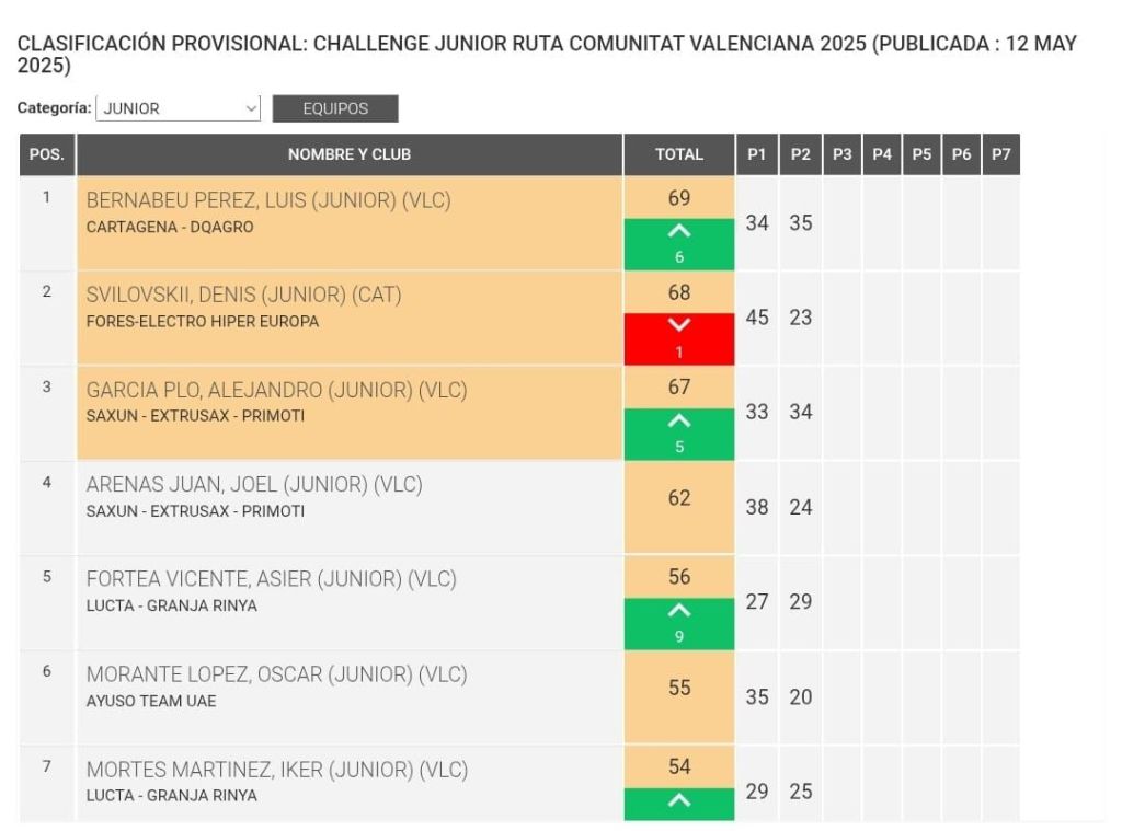 Calendario Challenge Júnior de Ruta de la Comunidad Valenciana