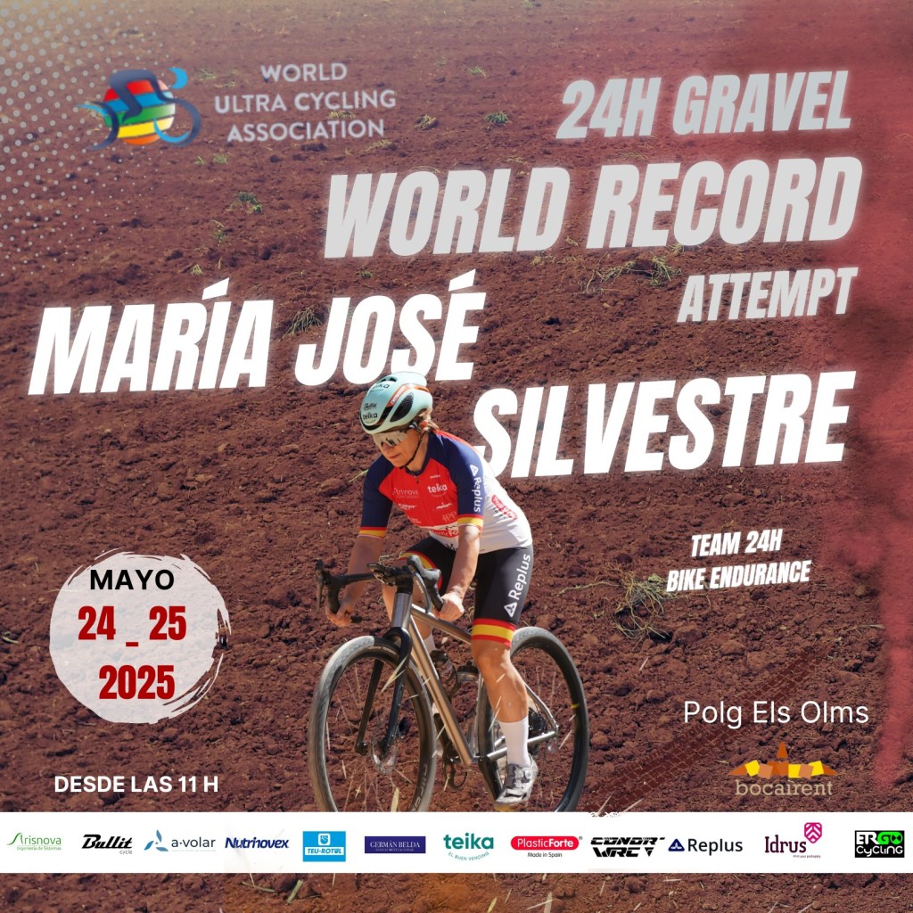 La ultrafondista María José Silvestre pretende establecer el primer récord del mundo de 24 Horas en la modalidad de Gravel. La ciclista valenciana se enfrentará a un nuevo desafío que todavía nadie ha intentado desde las 11 horas del sábado 24 de mayo hasta las 11 horas del domingo 25 mayo en Bocairent. «Es la primera vez que se hace, el gravel es una modalidad relativamente reciente y no existe aún récords oficiales. Yo voy a optar a un total de 9 récords: 6 horas, 12 horas, 24 horas, 200, 300, 400 y 500 kilómetros y 100 y 200 millas», explica María José.