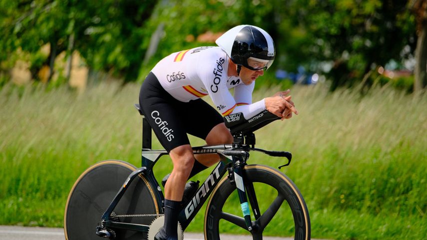 Eduardo Santas, que ya se impuso en la contrarreloj de Ostende, ha vuelto a exponer sus grandes piernas en una nueva contrarreloj internacional. Santas, que estaba marcando los mejores tiempos junto al canadiense Hayward, ha sufrido un problema mecánico que le ha impedido luchar por la victoria, teniendo que conformarse con la tercera plaza, a 48” del canadiense.