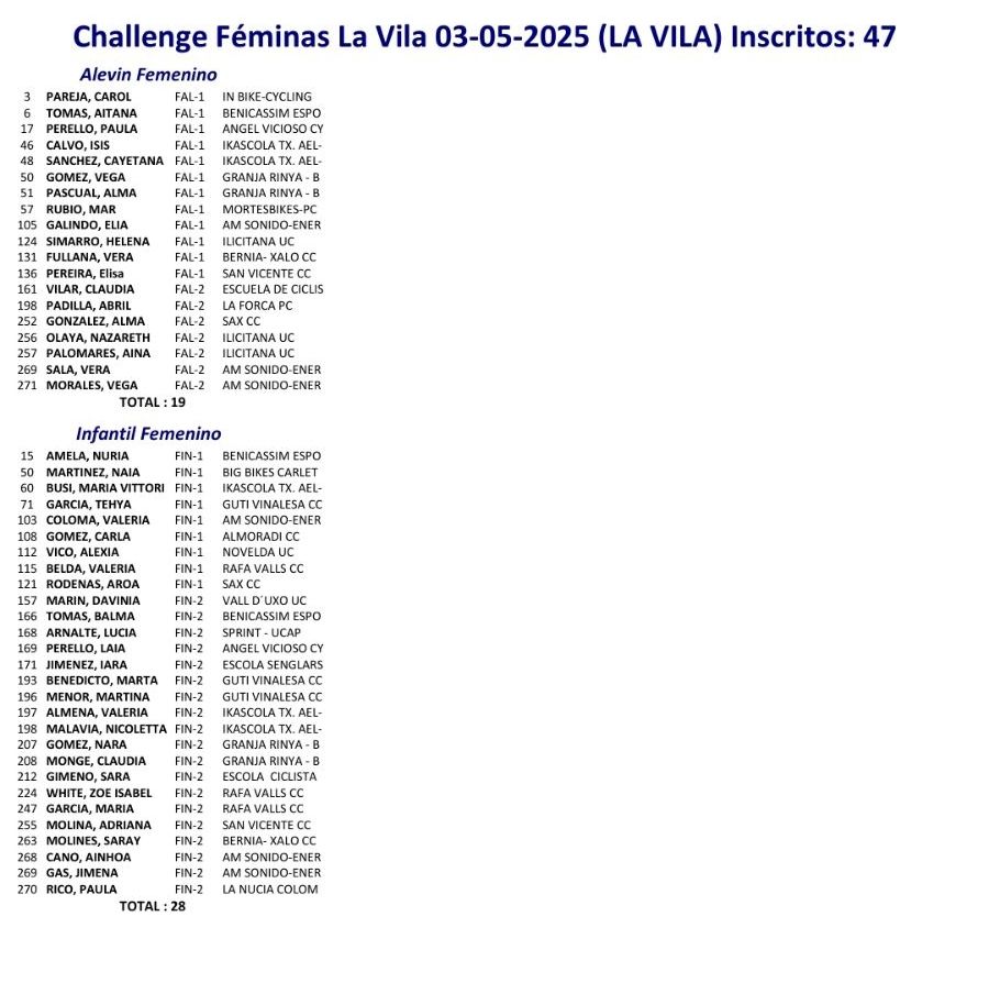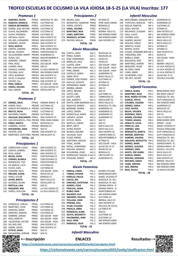 El domingo se disputa la XXIV Cursa d’Escoles La Vila Joisa que contará con 224 participantes. La prueba es puntuable para la Challenge de Escuelas de la provincia de Alicante, que cuenta con 177 inscritos, y para la Challenge Femenina Alevín e Infantil, con 47 corredoras en liza.
