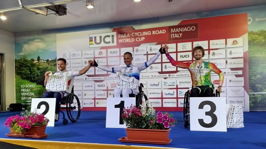 La Copa del Mundo de Maniago, segunda cita del circuito mundial de ciclismo paralímpico, ha dado comienzo hoy con la celebración de las contrarrelojes para handbikers y triciclos en las que la Selección Española, siguiendo la buena línea trazada en Ostende, ha vuelto a ser protagonista. Sergio Garrote, en la clase H2, y Manuela Vos, en la H1, se han hecho con la victoria para dar las dos primeras medallas de oro a la Selección Española.