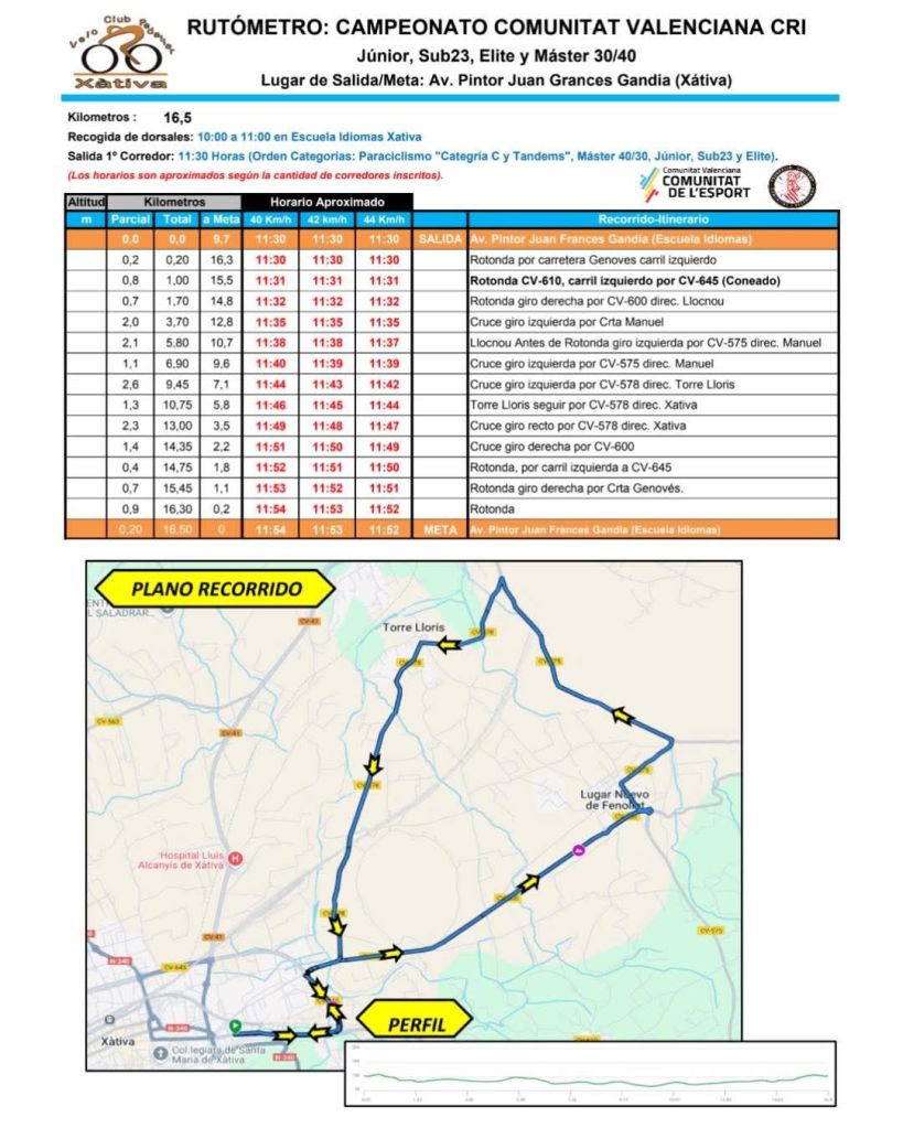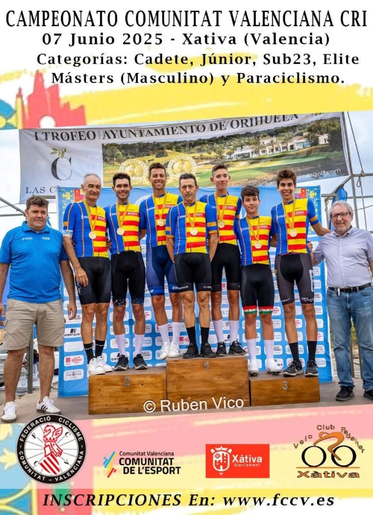 La FCCV recuerda que siguen abiertas las inscripciones para el Campeonato Autonómico de contrarreloj individual masculino y paracicilismo (masculino y féminas) que se celebrará el 7 de junio en Xàtiva.