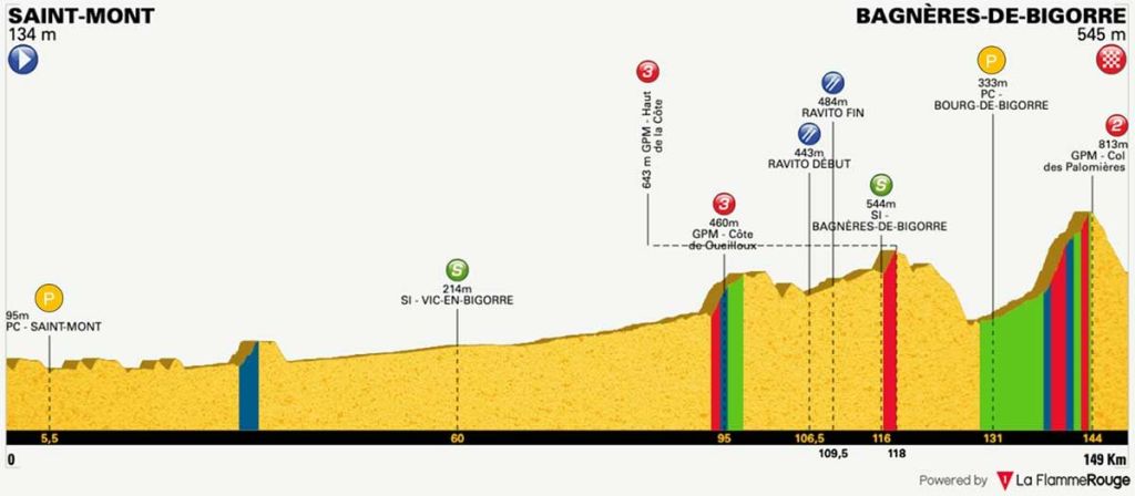La prueba arrancará hoy con una etapa camino a Bagnères de Bigore. La jornada, de 149 kilómetros, contará con la ascensión al Col de Palomières como punto decisivo a menos de 5 kilómetros para el final. La montaña seguirá siendo protagonista en el segundo parcial, donde la subida al Col de la Croix Blanche seleccionará la carrera antes de llegar a la Côte de Cauterets, un puerto llamado a hacer diferencias considerables en la general.