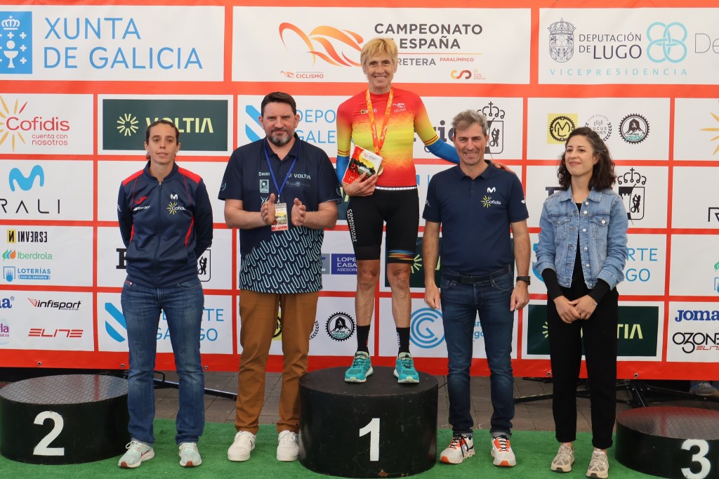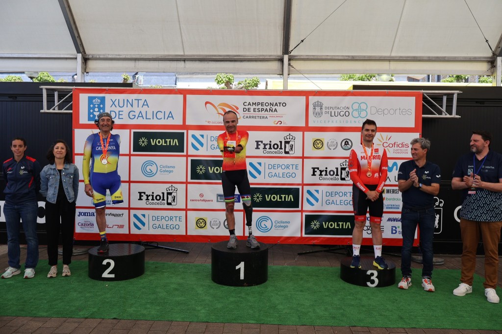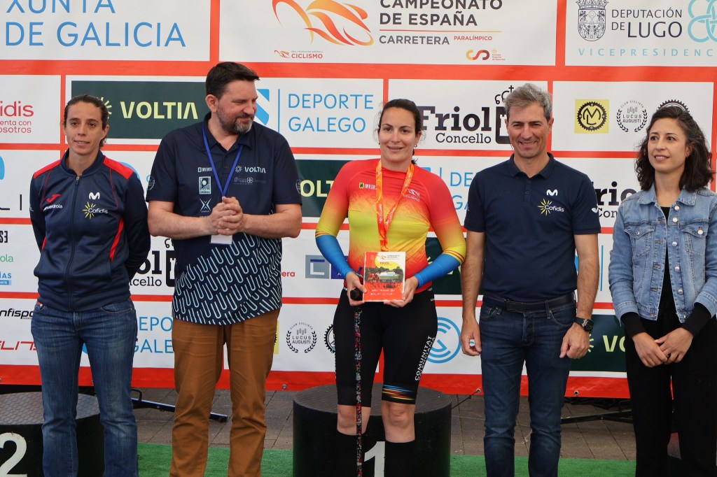 Hoy se han disputado las pruebas de contrarreloj del Campeonato de España de Ciclismo Paralímpico en Carretera que se celebran este fin de semana en la localidad gallega de Friol. Nacho Rodrigo (FCCV) ha logrado el título en MB, con Christian Venge (FCCV), tercero; Rosa Sansaloni (FCCV), en WC5; Erika González (FCCV), en WT2; Ricardo Tem (Dstrel Cycling Team), en MC1; y Maurice Far Eckhard, en MC2. Además, Pablo Torres (FCCV) ha sido plata en MT1; y Julián José Culiáñez (FCCV) termina tercero en MC5. En total, cinco medallas de oro, una de plata y dos de bronce.