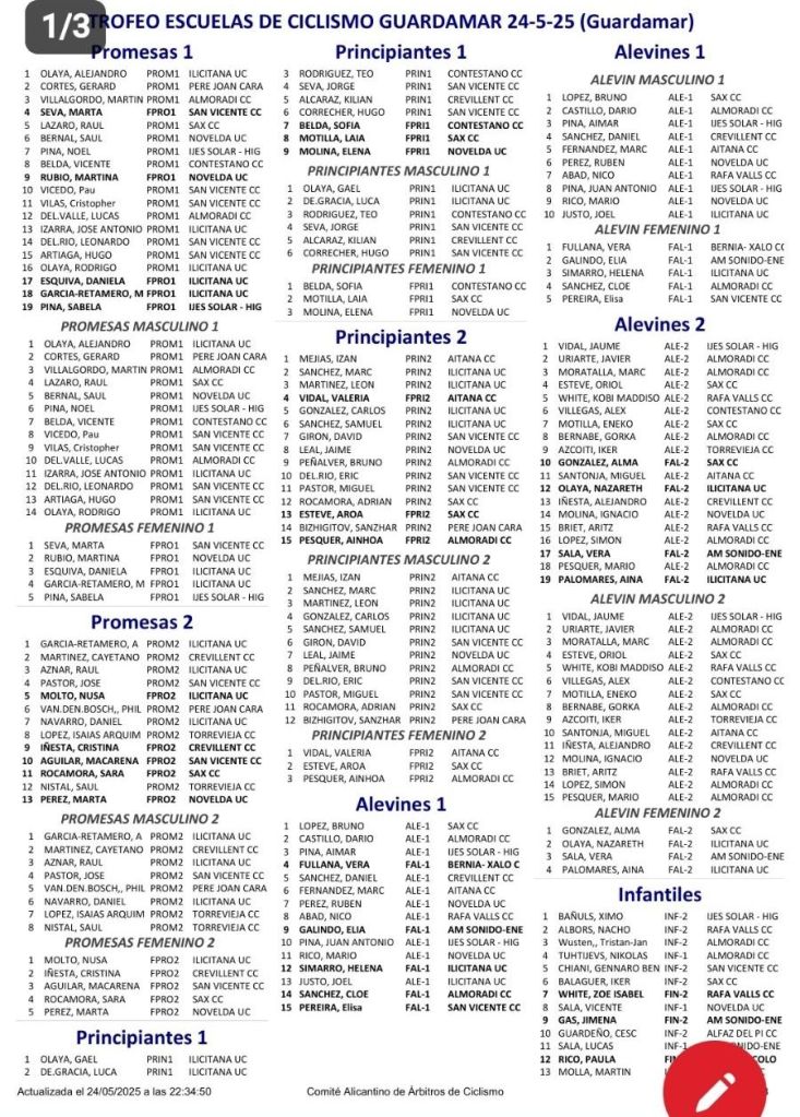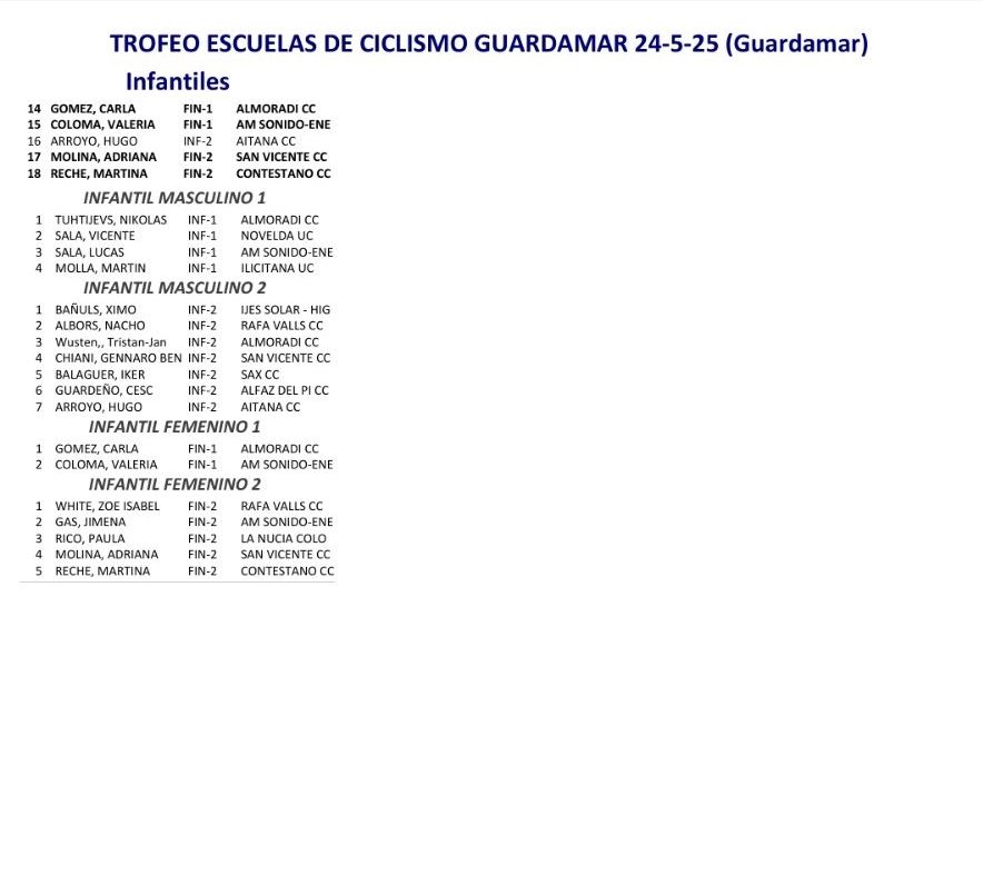 24/05 TROFEO ESCUELAS DE CICLISMO GUARDAMAR. Clasificaciones