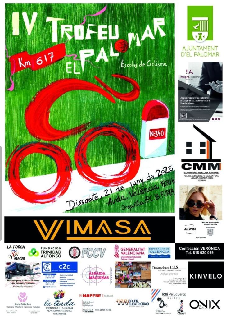 El próximo 21 de junio, a las 17.30 horas, se disputa el IV Trofeu El Palomar d’Escoles de Ciclisme, prueba puntuable para la Challenge de la provincia de València. Las inscripciones ya están abiertas y organiza la competición la PC La Forca.