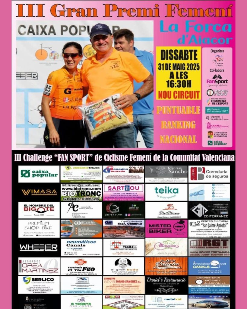 El próximo sábado se disputa el III Gran Premio Femenino organizado por la P.C. La Forca Aiacor, con la colaboración de la concejalía de Deportes, Fan Sport y la Federación de Ciclismo de la Comunidad Valenciana. El sábado, 31 de mayo, desde las 16.30 horas, centenares de ciclistas competirán en las categorías Sub-23, Máster 60, Máster 50 , Máster 40 , Máster 30, Júnior, Élite y Cadete.