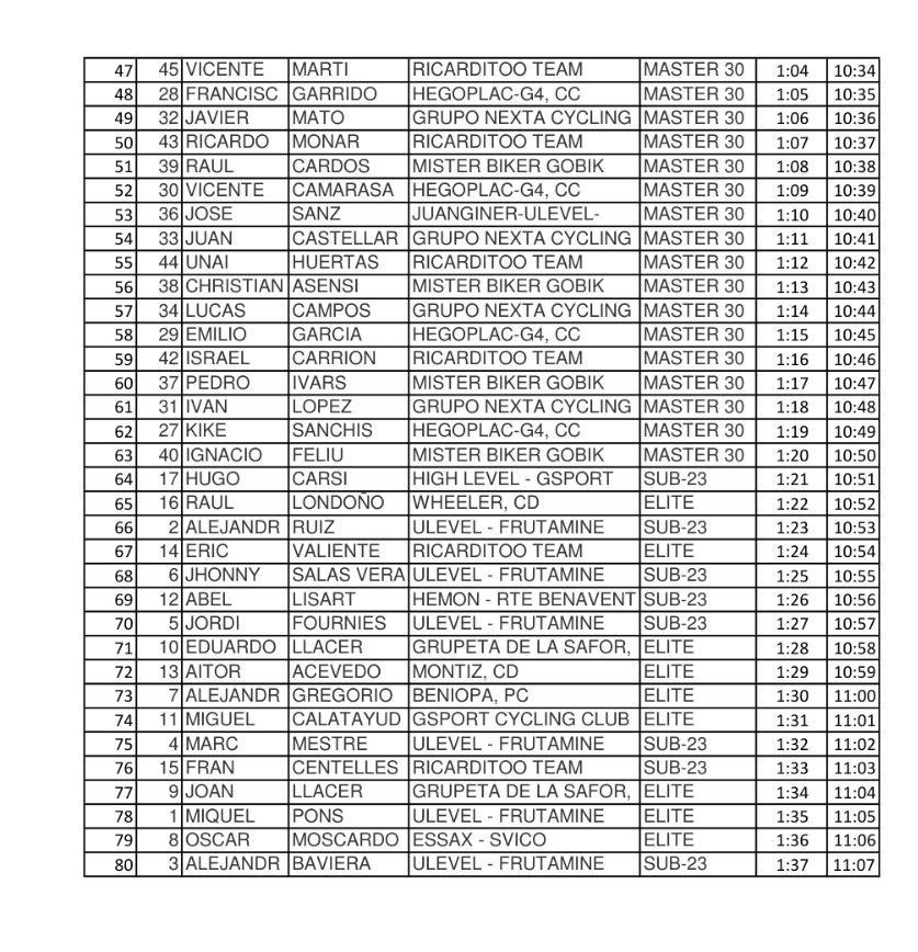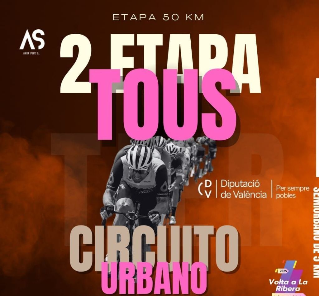 2ª Etapa – Sábado, 31 de mayo. Tous. Circuito urbano de 5 km. 50 Km. Elite y Sub 23, Másters y Paraciclistas (16.45 horas. Inscritos). No corren los Cadetes.