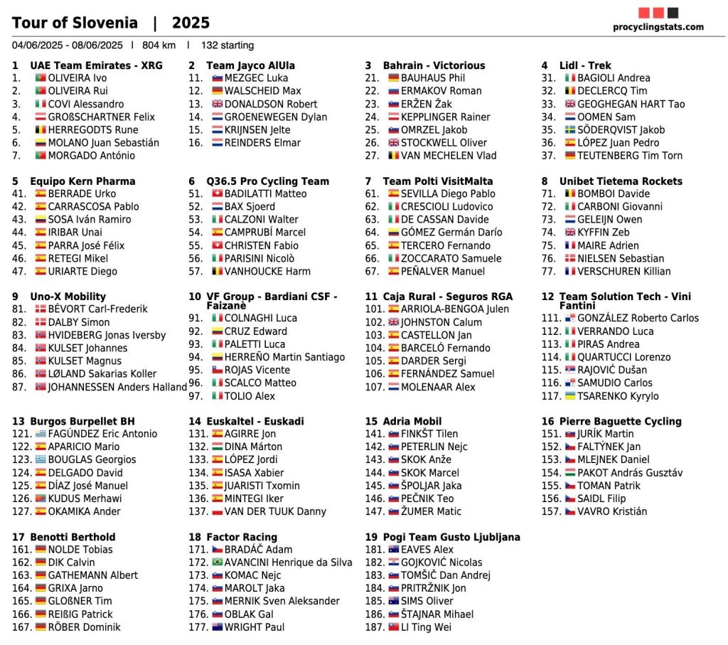 Giovanni Ellena, director deportivo: «Ninguna carrera es fácil, todos los equipos buscan sumar puntos y se endurece mucho la pelea. Por nuestra parte, vamos a buscar un buen resultado en la general con Tercero, Gómez y Crescioli, a la vez que confiamos en Peñalver para las llegadas al esprint. Con ese objetivo de mostrar una buena imagen de nuestros patrocinadores en carrera, vamos con confianza a Eslovenia».