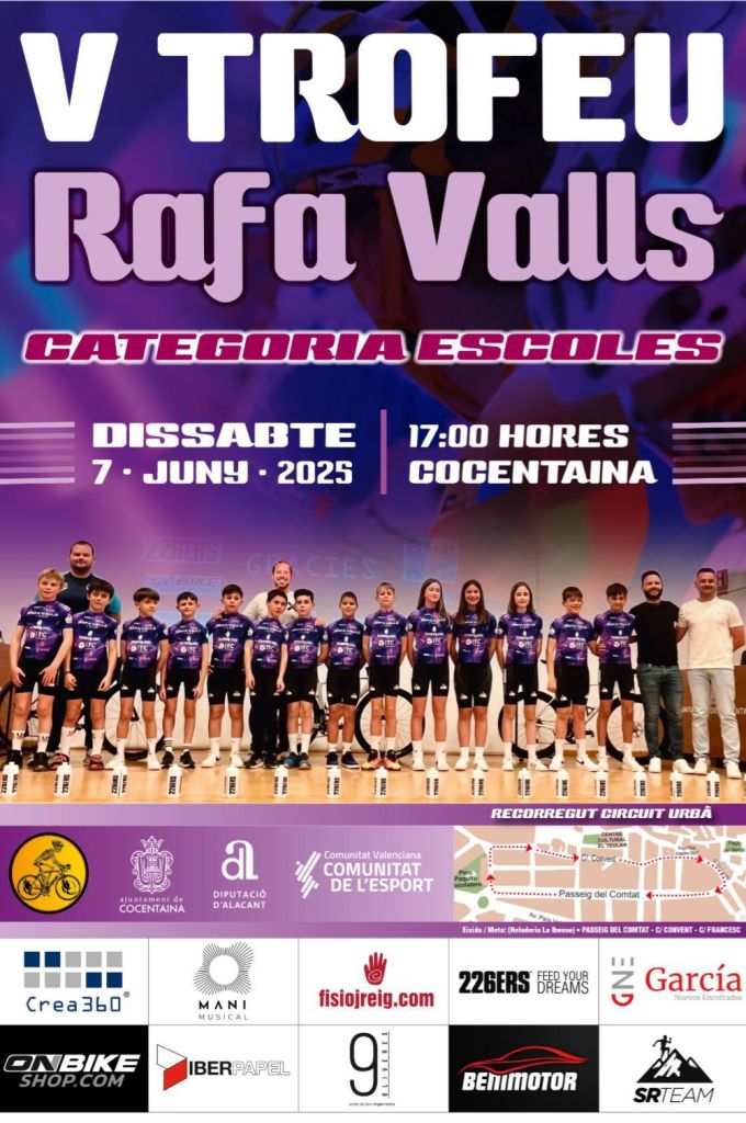 El sábado, 7 de junio, a las 17:00 horas, en el Passeig del Comtat de Cocentaina se disputa la quinta edición del Trofeu Rafa Valls de Escuelas. La prueba es puntuable para la Challenge de Escuelas de la provincia de Alicante y la organiza el CC Rafa Valls.